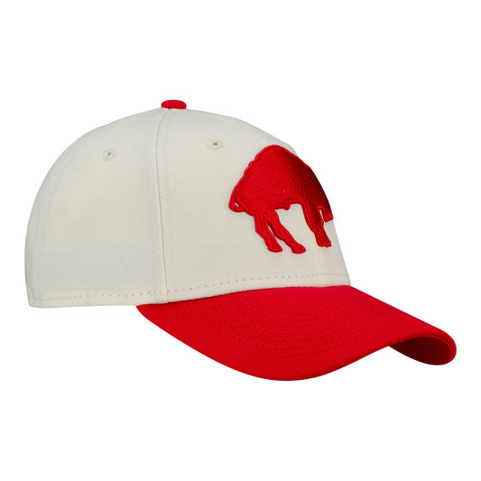 • New Era Bills 9FORTY A-Frame Back-to-Back AFL Champs Adjustable Hat In Red & Cream - Angled Left Side View