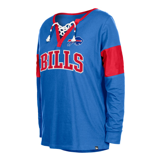 Women's New Era Bills Lace-Up Notch-Neck Long Sleeve T-Shirt